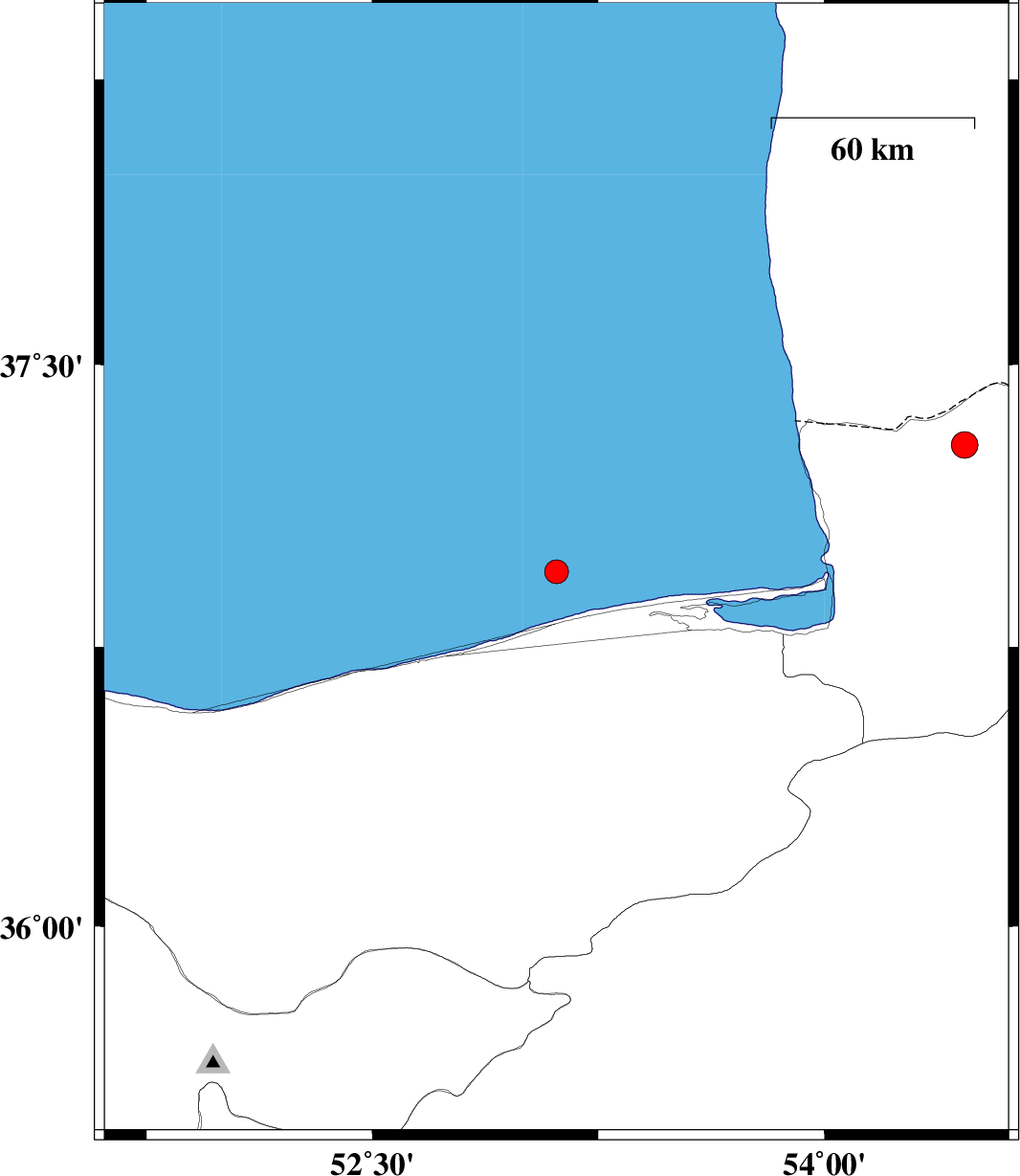 2017/04/24 | 11:09:12.2 | 15:39:12.2 | 36.95 | 53.111 | 14 | ML:3.5 | Caspian Sea, 44 km North of Sari | ||