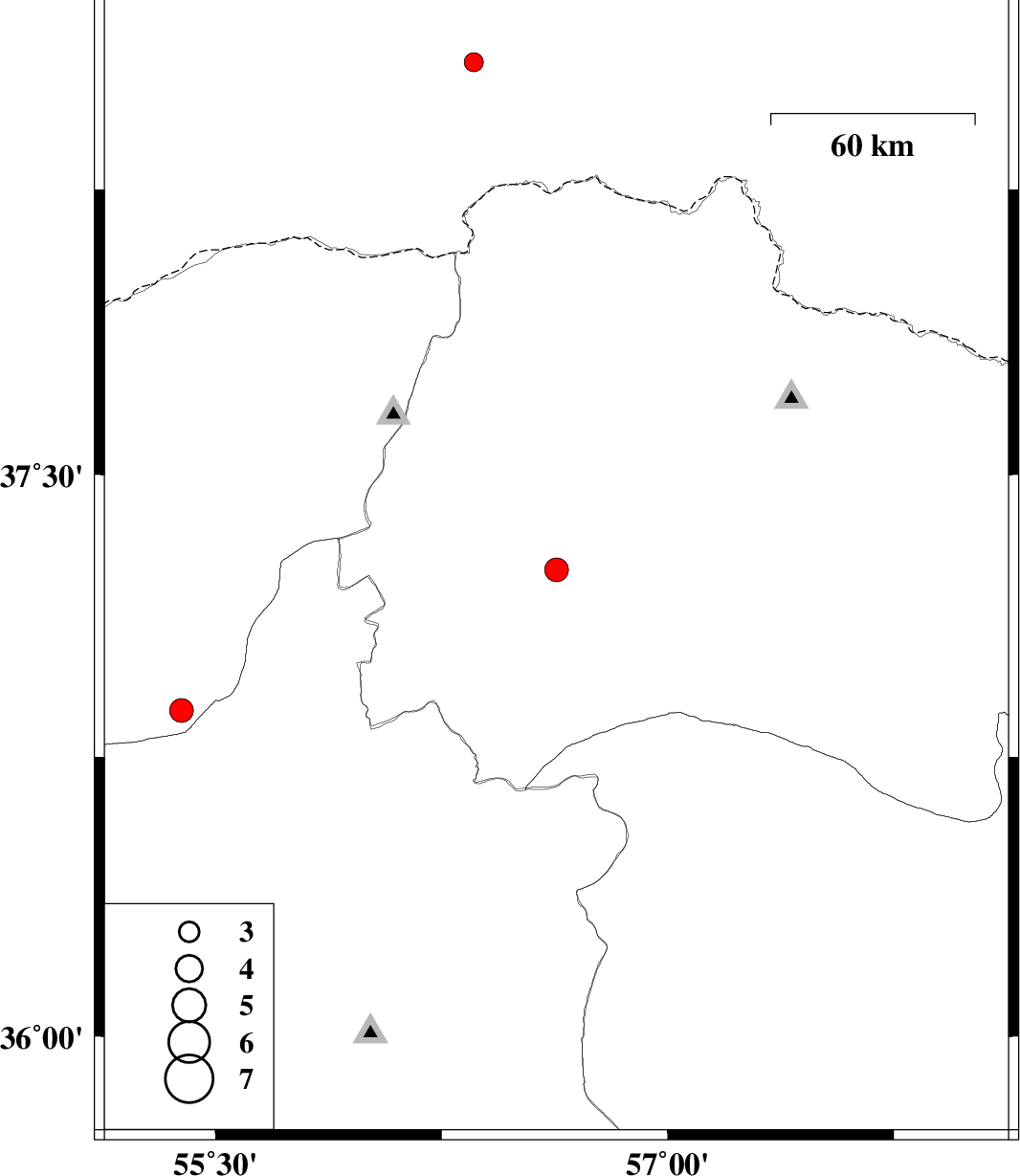 | 2017/03/31 | 12:05:37.2 | 16:35:37.2 | 36.874 | 55.387 | 6 | ML:3.5 | Golestan Province, 40 km South of Minodasht |