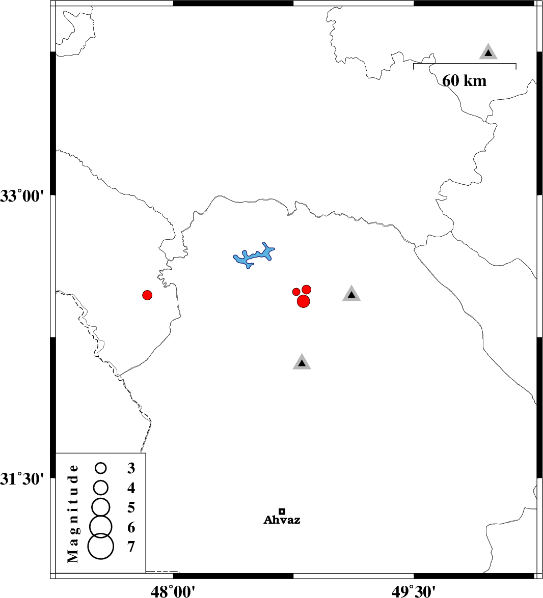 | 2017/04/12 | 14:09:59.7 | 18:39:59.7 | 32.489 | 48.767 | 18 | ML:2.1 | Khoozestan Province, 34 km North-West of Lali | ||