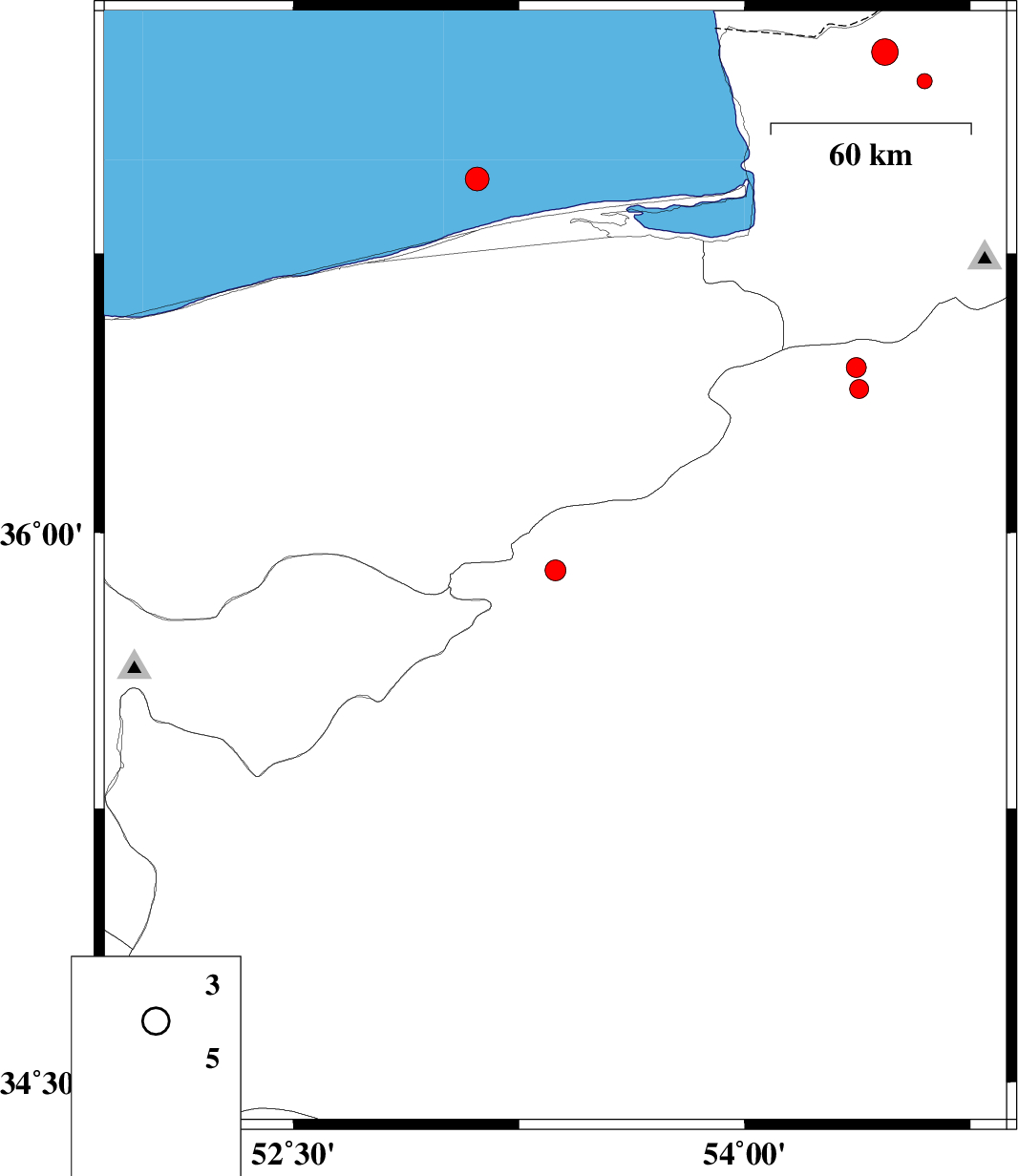Caspian Sea, 44 km North of Sari | |