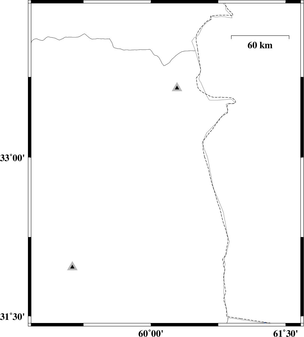 | 2017/04/29 | 10:13:29.6 | 14:43:29.6 | 32.933 | 60.167 | 14 | ML:2.5 | Khorasan(south) Province, 49 km North-East of Sarbisheh |