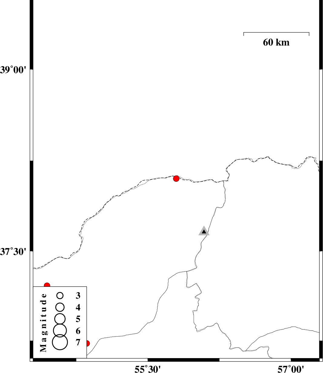 | 2017/05/05 | 08:12:01.8 | 12:42:01.8 | 38.102 | 55.798 | 14 | ML:2.8 | Golestan Province, 85 km North-East of Kalaleh | ||