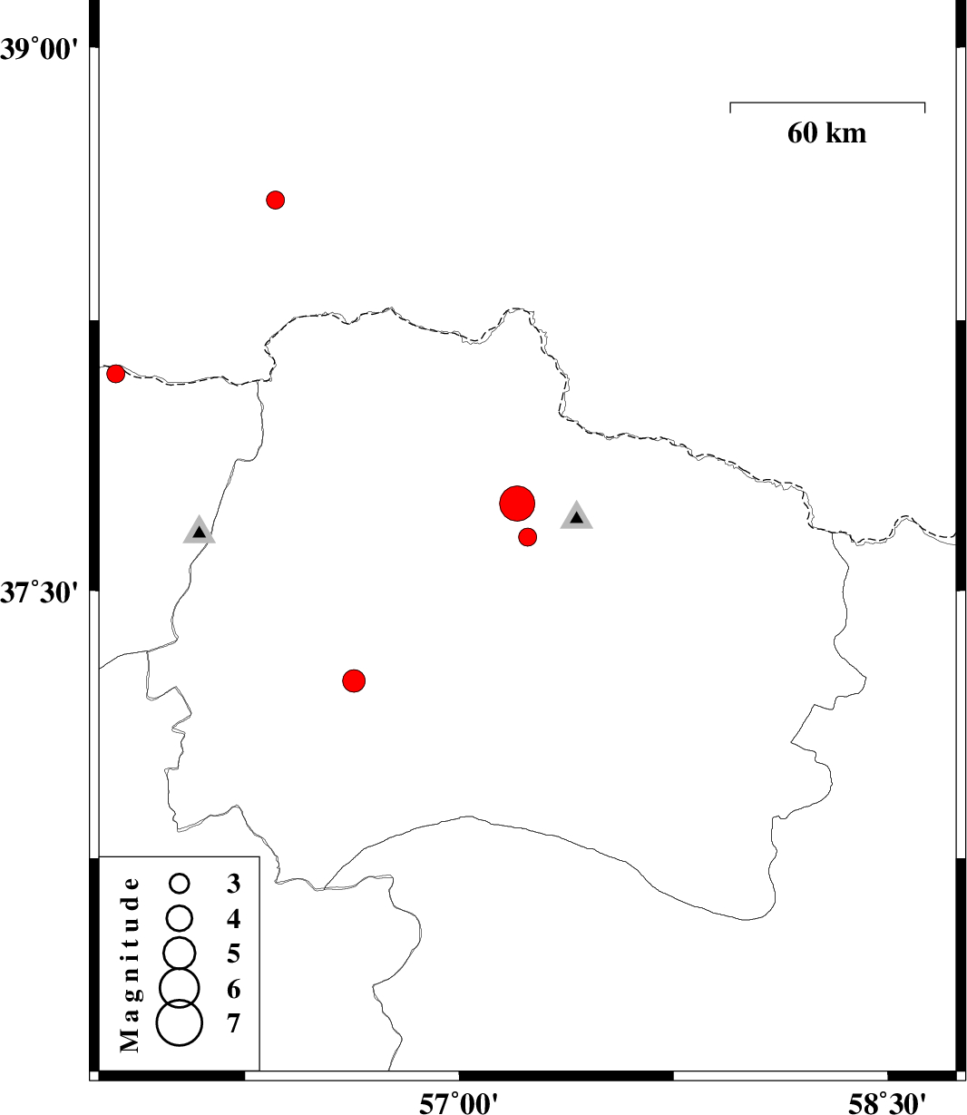 2017/05/05 | 08:12:01.8 | 12:42:01.8 | 38.102 | 55.798 | 14 | ML:2.8 | Golestan Province, 85 km North-East of Kalaleh | ||