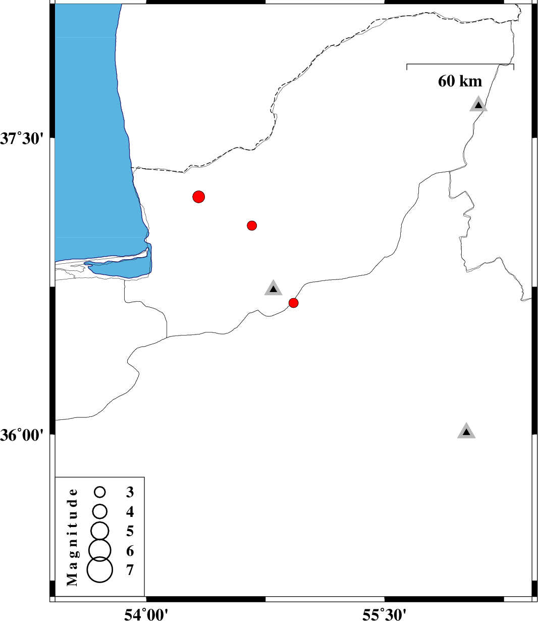 | 2017/05/16 | 07:34:17.1 | 12:04:17.1 | 37.204 | 54.33 | 15 | ML:3.4 | Golestan Province, 24 km North-West of Aq Qaleh |