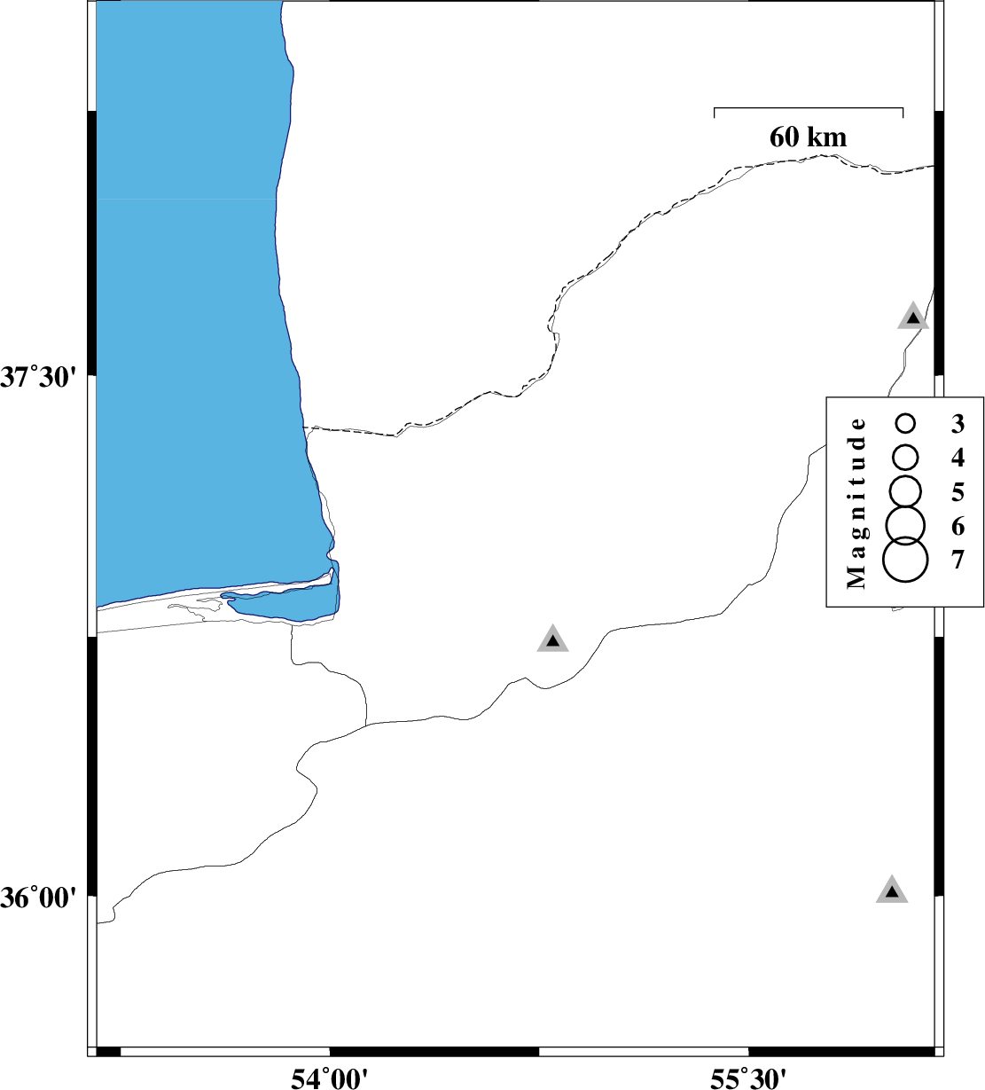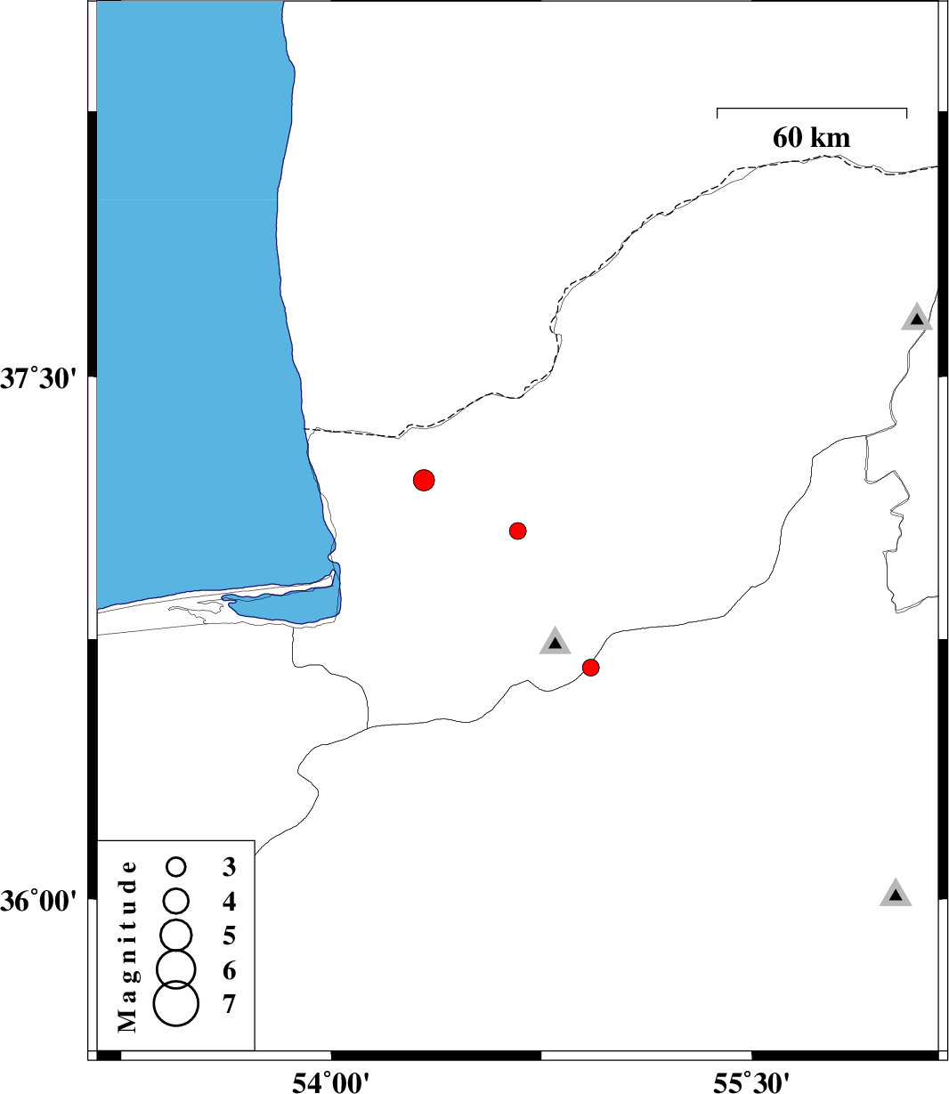| 2017/05/16 | 07:34:17.1 | 12:04:17.1 | 37.204 | 54.33 | 15 | ML:3.4 | Golestan Province, 24 km North-West of Aq Qaleh |