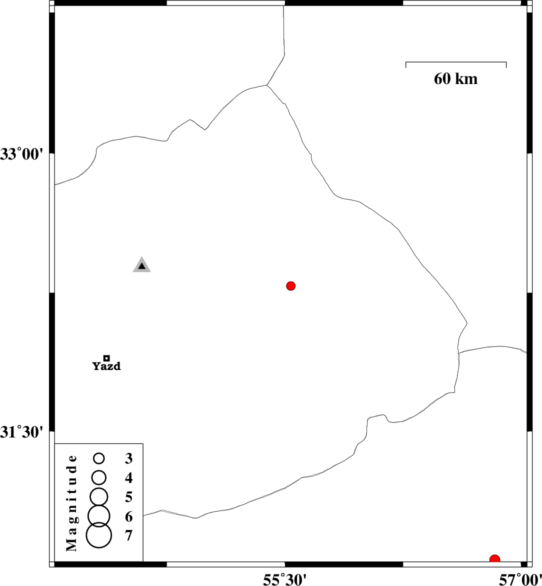 | 2017/05/20 | 16:29:42.4 | 20:59:42.4 | 32.287 | 55.537 | 9 | ML:2.5 | Yazd Province, 77 km North-East of Bafq | ||