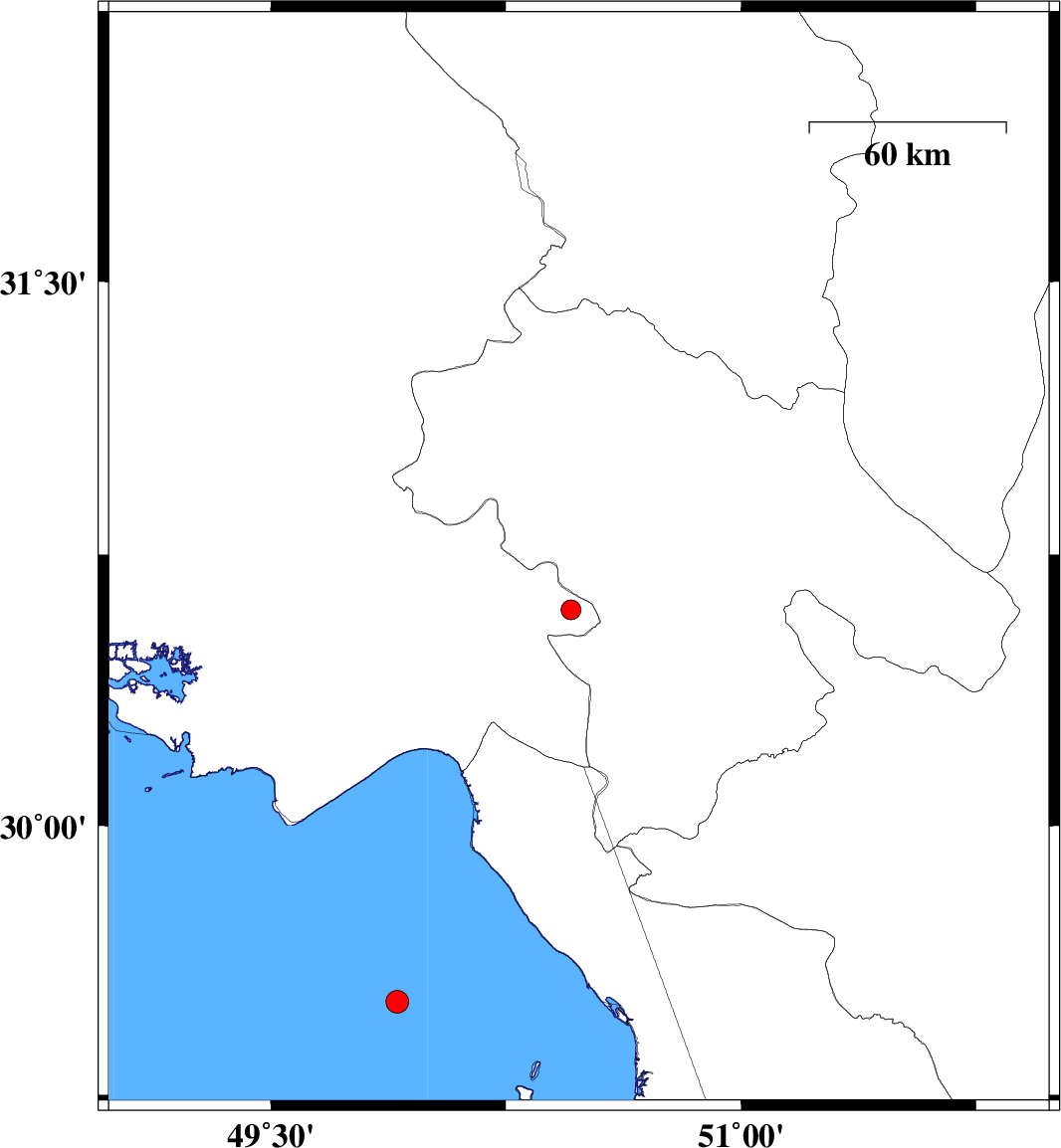 | 2017/05/25 | 07:47:08.1 | 12:17:08.1 | 30.736 | 50.483 | 17 | ML:3.3 | Kohkiluieh va boyerahmad Province, 10 km of Dehdasht | ||