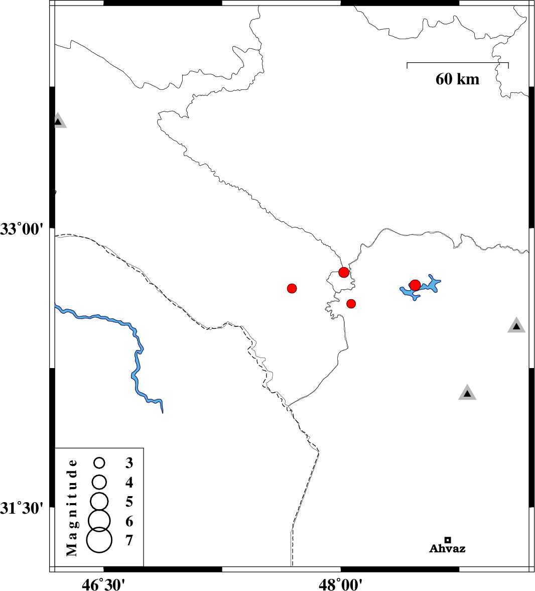 | 2017/06/06 | 00:00:13.8 | 04:30:13.8 | 32.694 | 48.47 | 18 | ML:3.1 | Khoozestan Province, 28 km North-East of Andimeshk | ||