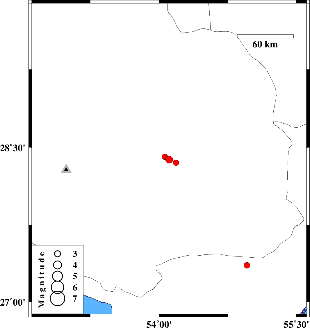 | 2017/06/02 | 12:11:57.8 | 16:41:57.8 | 28.382 | 54.11 | 7 | ML:3.5 | Fars Province, 55 km South-East of Jahrom | ||