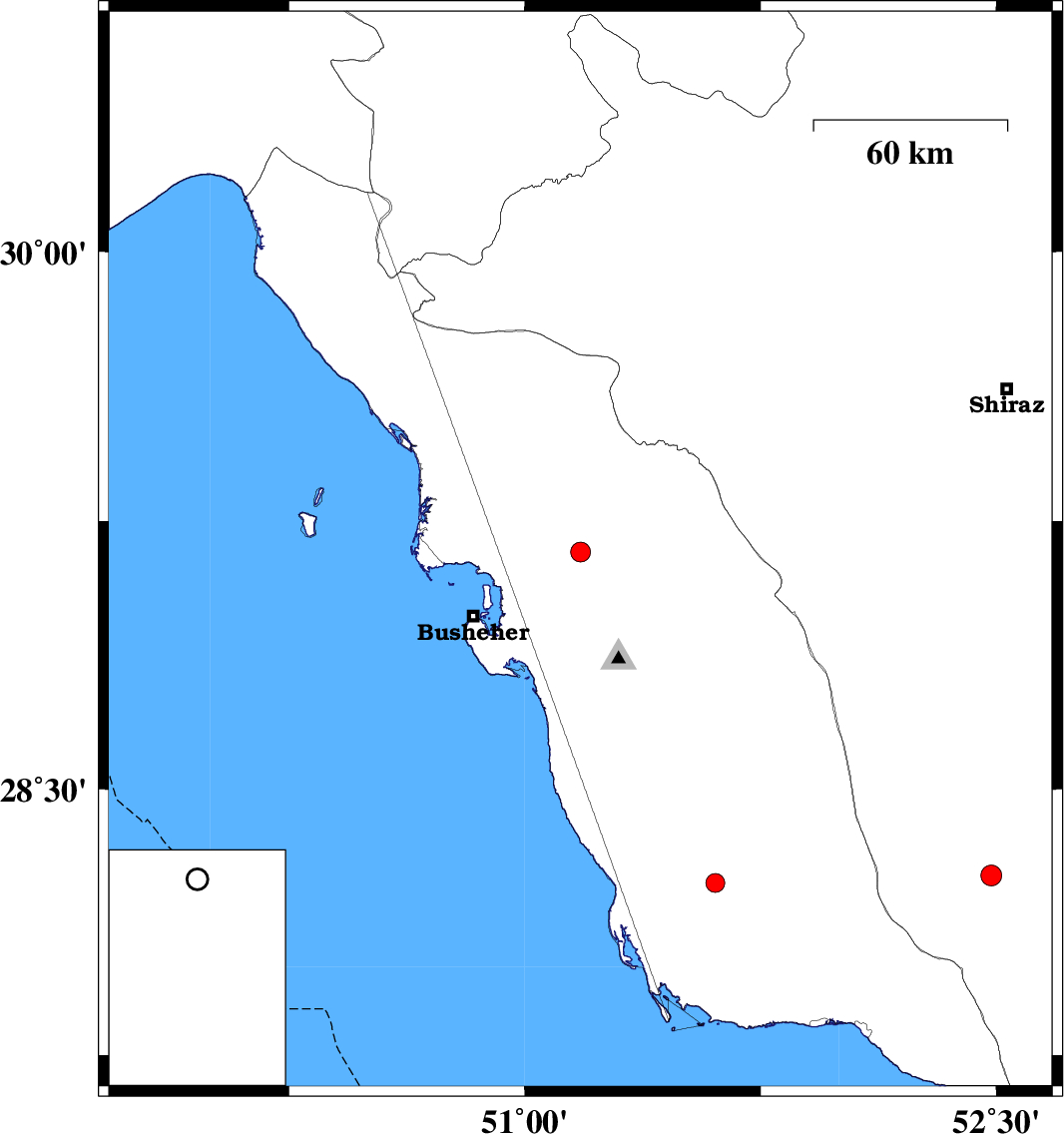 | 2017/06/14 | 06:00:27.6 | 10:30:27.6 | 29.164 | 51.177 | 14 | ML:2.8 | Bushehr Province, 11 km of Borazjan | ||