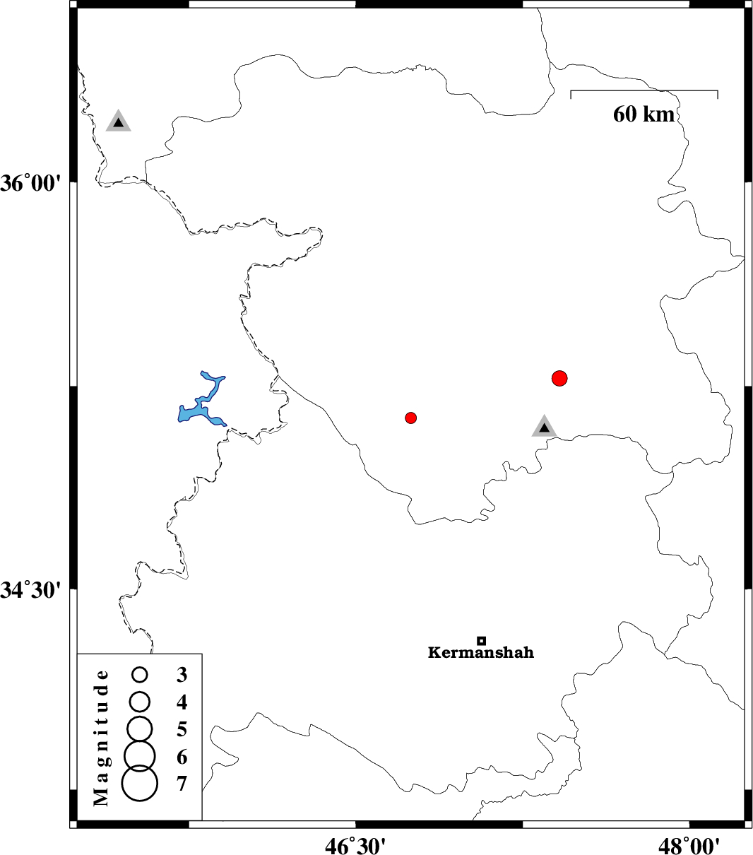 | 2017/06/19 | 01:47:46.1 | 06:17:46.1 | 35.133 | 46.747 | 7 | ML:2.2 | Kurdistan Province, 31 km South-West of Sanandaj |