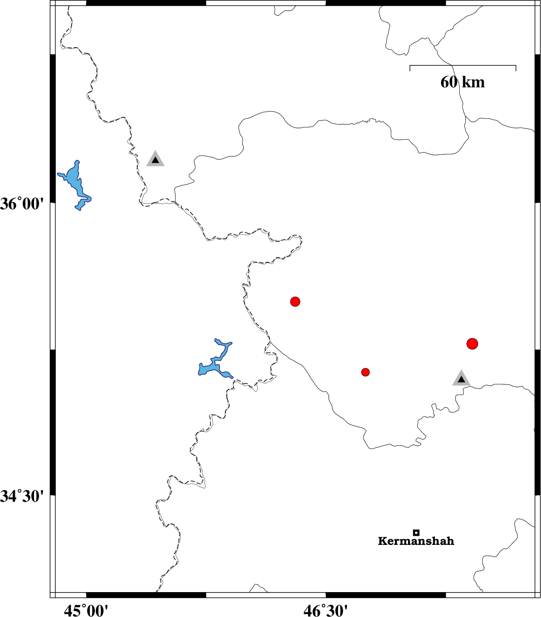 | 2017/06/19 | 01:47:46.1 | 06:17:46.1 | 35.133 | 46.747 | 7 | ML:2.2 | Kurdistan Province, 31 km South-West of Sanandaj |