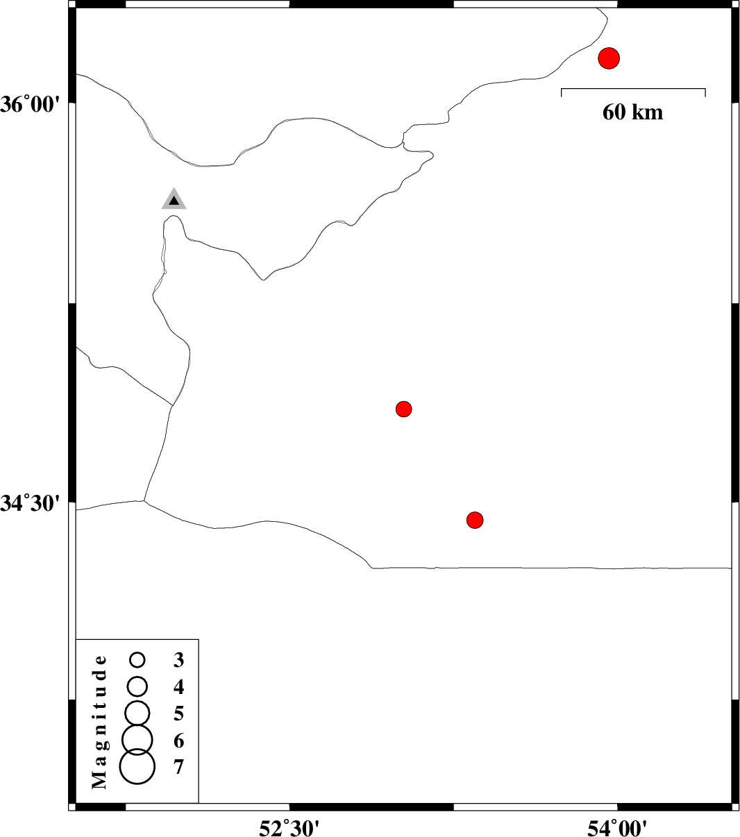 | 2017/06/27 | 20:00:57.5 | 00:30:57.5 | 34.852 | 53.022 | 14 | ML:3.3 | Semnan Province, 74 km South-East of Garmsar | ||