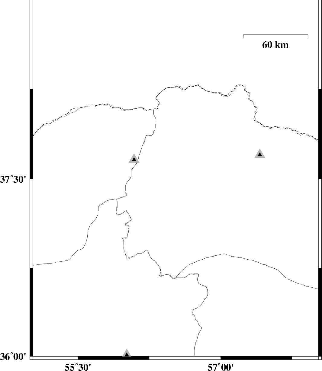 | 2017/06/28 | 11:19:30.4 | 15:49:30.4 | 37.237 | 56.81 | 6 | ML:2.9 | Khorasan(north) Province, 37 km South-West of Ashkhaneh | ||