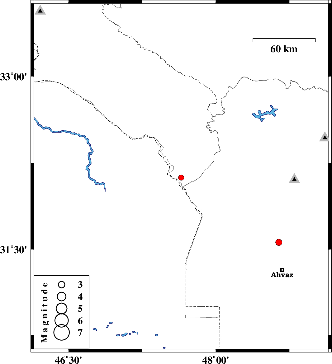 | 2017/07/02 | 03:29:52.2 | 07:59:52.2 | 31.562 | 48.643 | 15 | ML:3 | Khoozestan Province, 27 km North of Ahvaz |