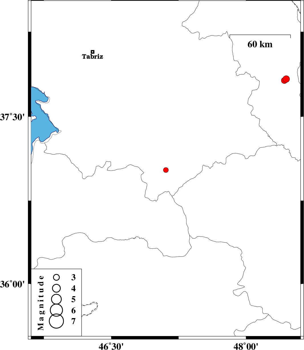 | 2017/07/12 | 21:42:04.7 | 02:12:04.7 | 37.821 | 48.427 | 15 | ML:3.1 | Ardebil Province, 14 km North of Givi |