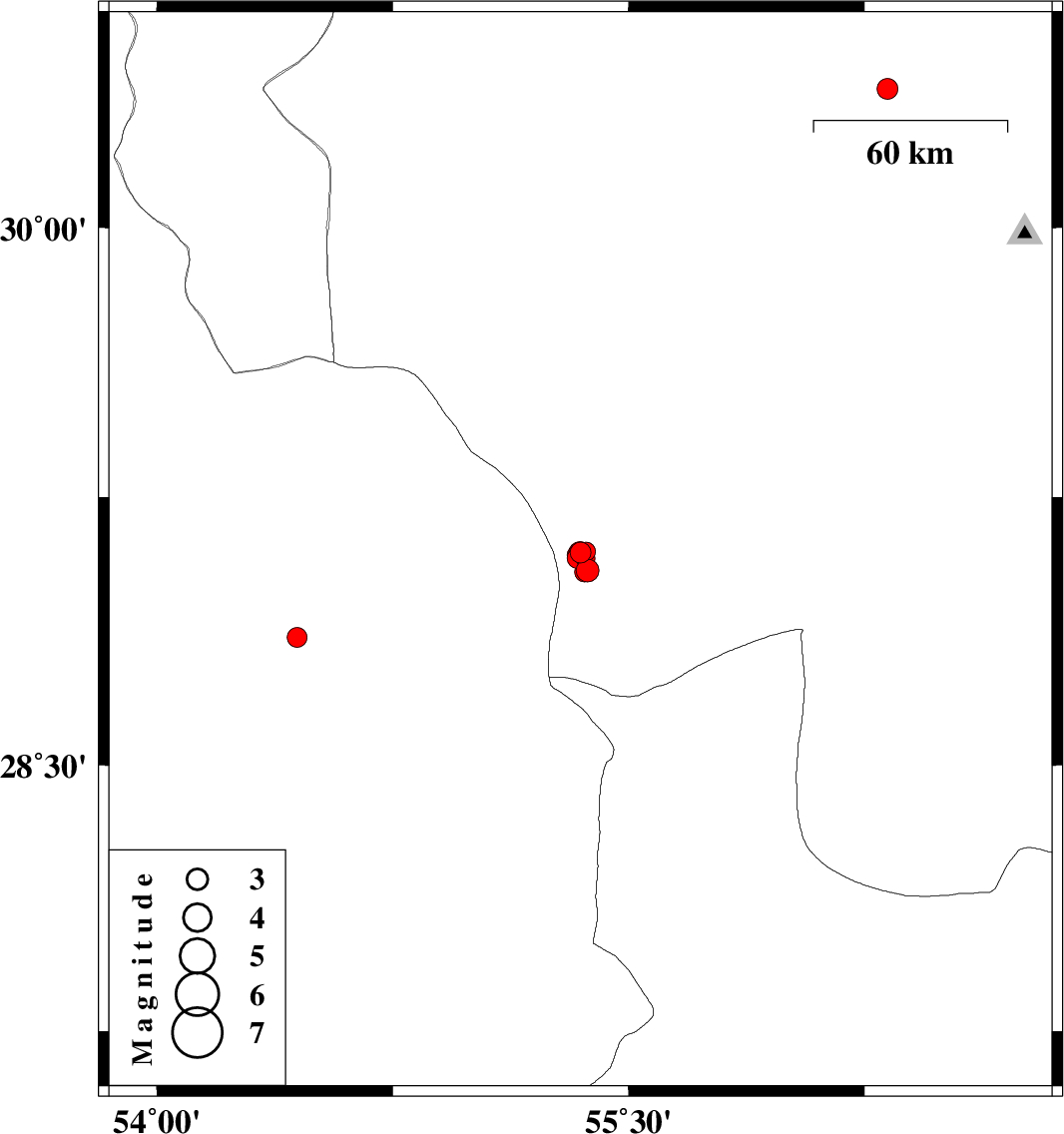 2017/07/13 11:07:08.5 15:37:08.5 29.08955.33414 ML:2.7 Kerman Province, 52 km South-West of Sirjan