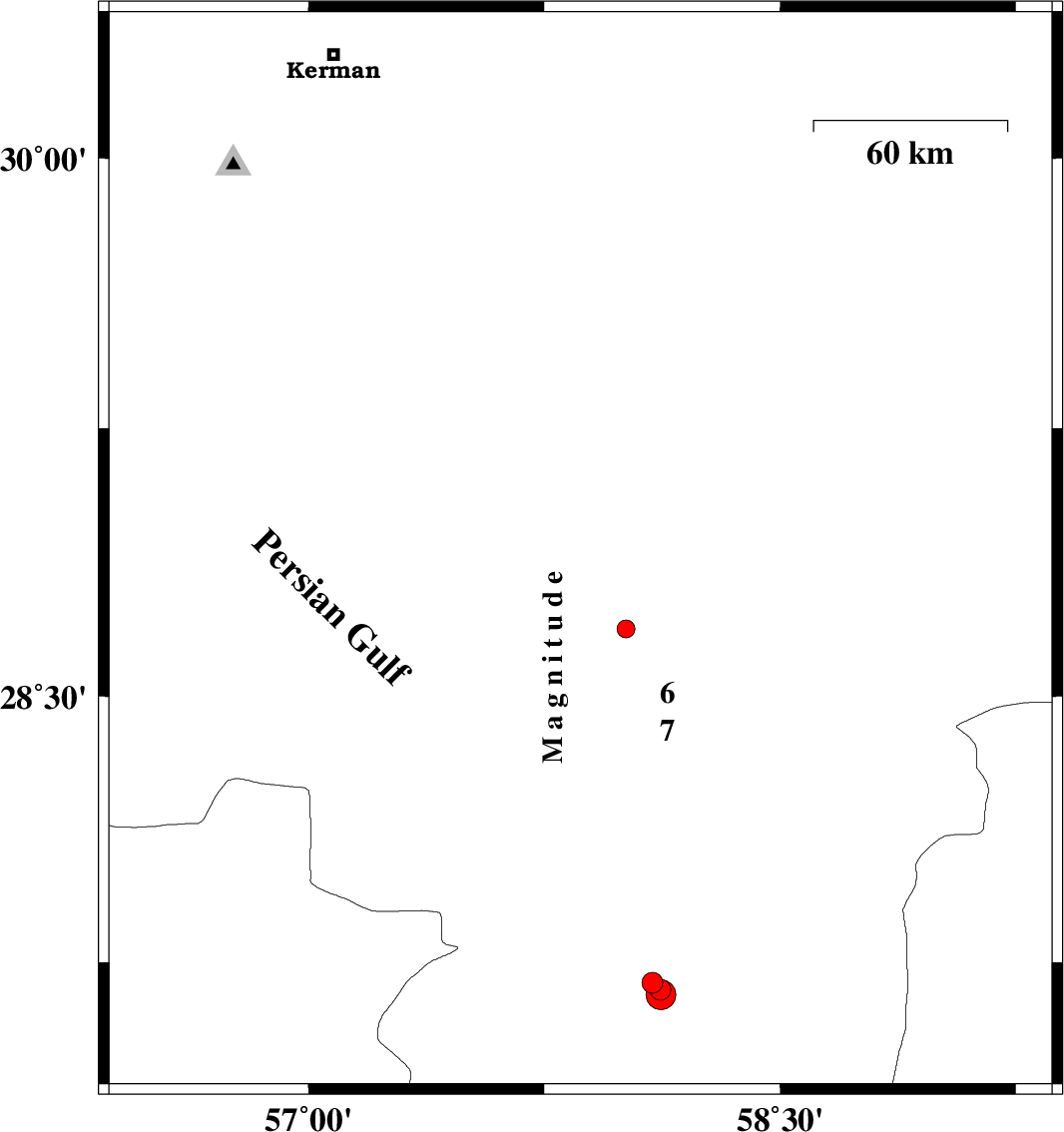 | 2017/07/15 | 18:18:15.5 | 22:48:15.5 | 28.906 | 57.865 | 14 | ML:4.2 | Kerman Province, 29 km North-East of Jiroft | ||