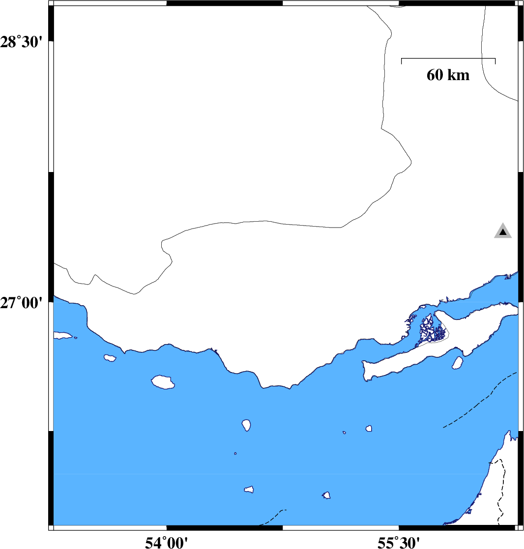| 2017/07/06 | 05:21:10.1 | 09:51:10.1 | 26.896 | 54.015 | 14 | ML:2.9 | Hormozgan Province, 48 km South-West of Bastak |