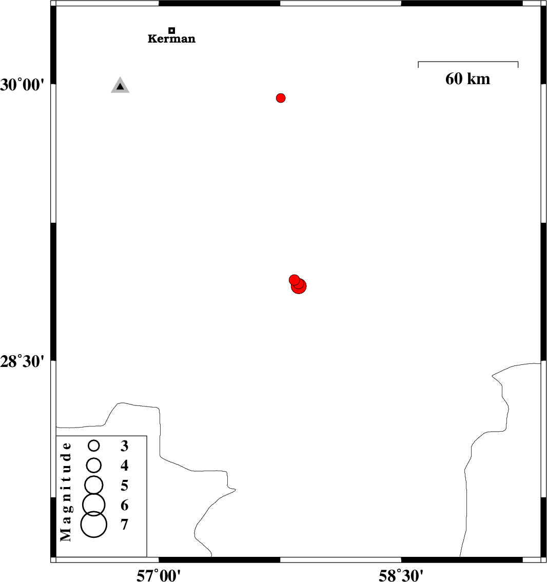 | 2017/07/15 | 18:18:15.5 | 22:48:15.5 | 28.906 | 57.865 | 14 | ML:4.2 | Kerman Province, 29 km North-East of Jiroft | ||