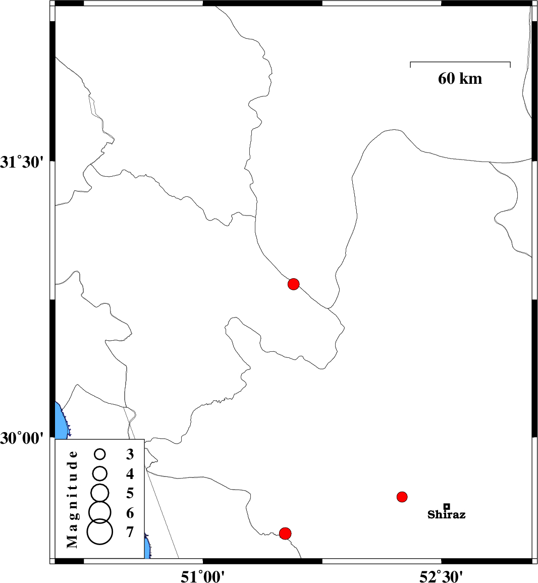| 2017/07/15 | 00:00:22.1 | 04:30:22.1 | 29.672 | 52.252 | 14 | ML:3 | Fars Province, 28 km -West of Shiraz | ||