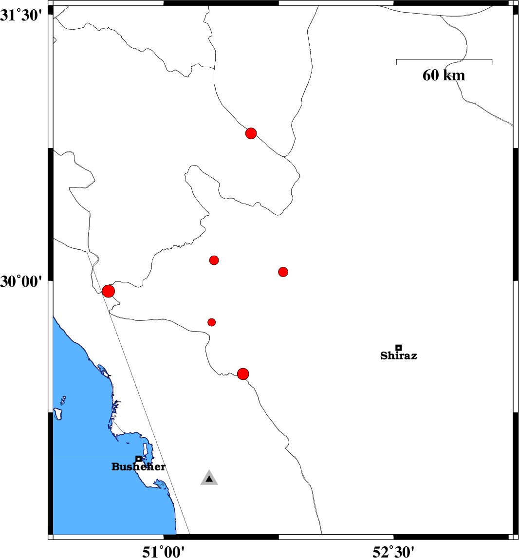 Fars Province, 43 km North-East of Bandar-e genaveh | |