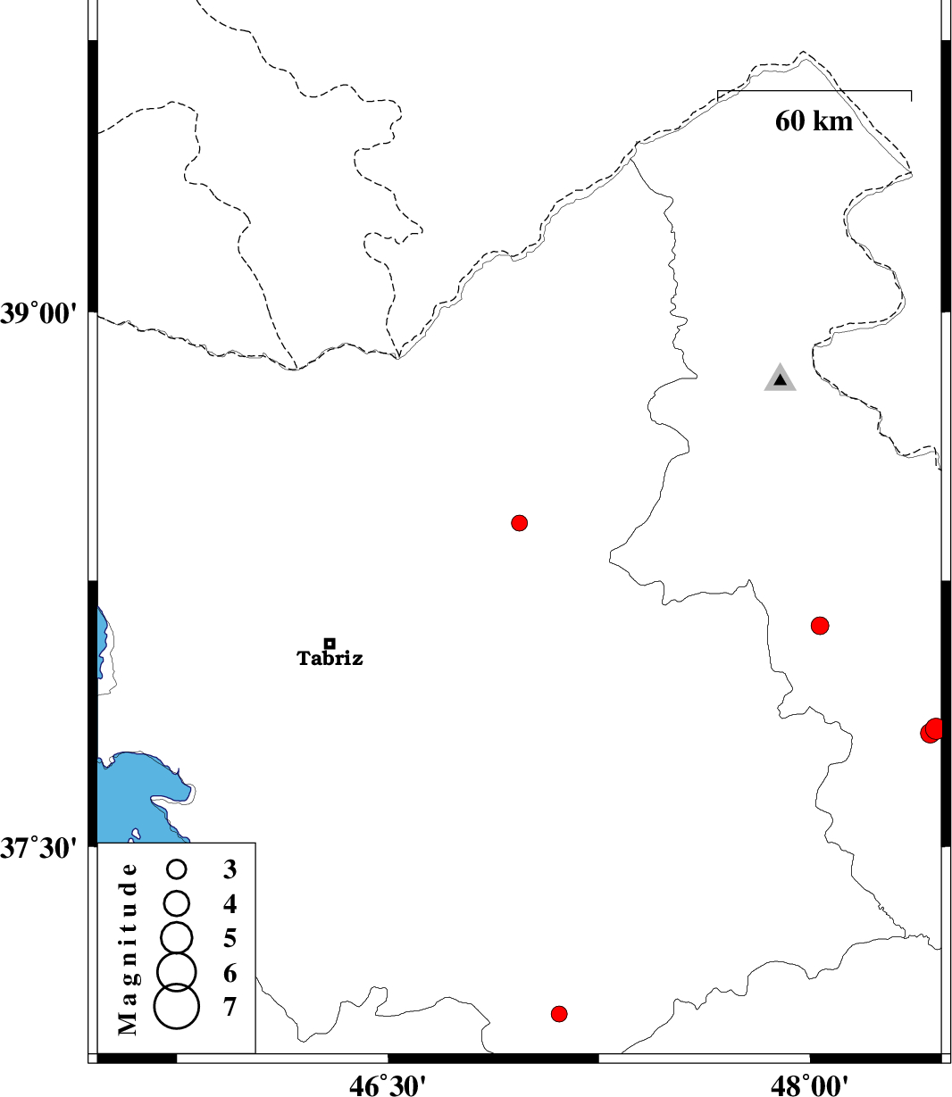| 2017/07/12 | 21:42:04.7 | 02:12:04.7 | 37.821 | 48.427 | 15 | ML:3.1 | Ardebil Province, 14 km North of Givi |