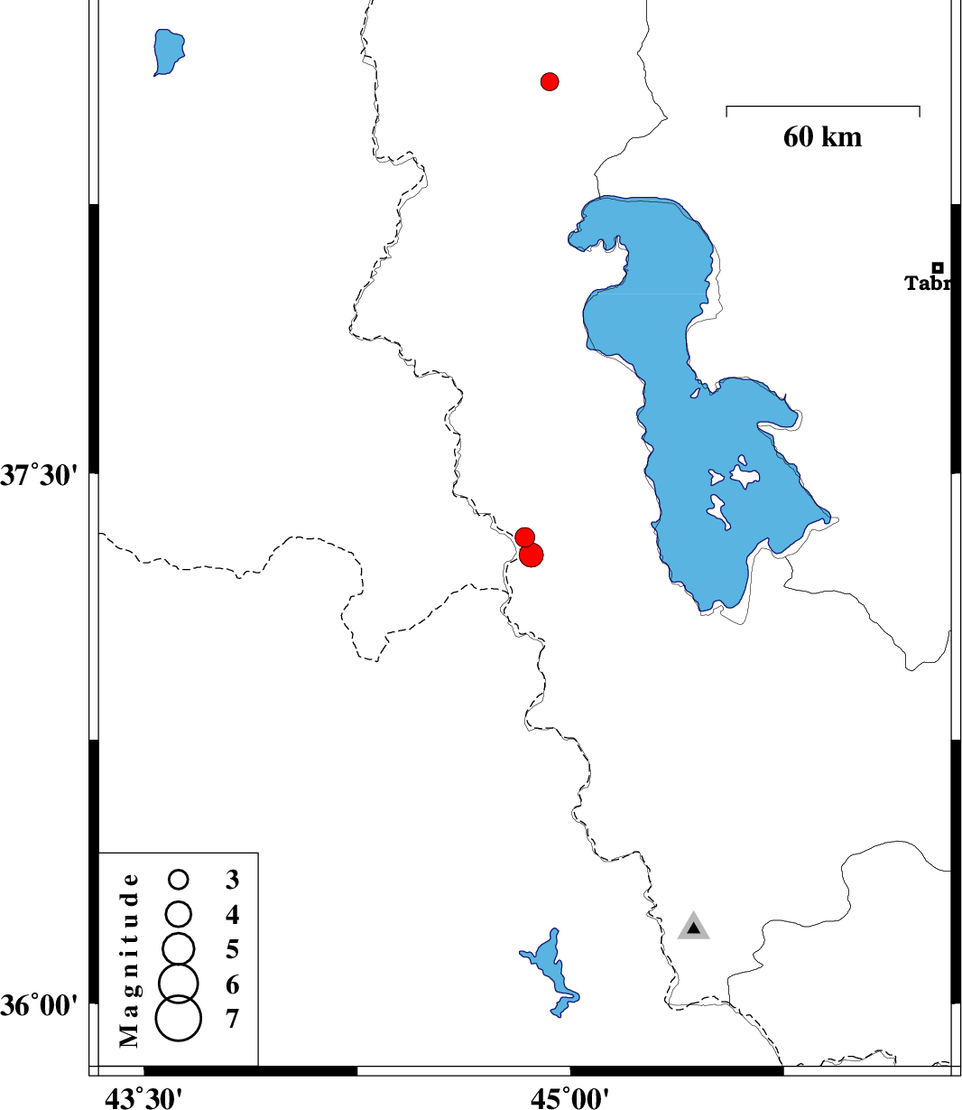 | 2017/07/30 | 04:09:01.7 | 08:39:01.7 | 37.321 | 44.839 | 14 | ML:3.1 | Azarbaijan Gharbi Province, 32 km South-West of Orumiyeh | ||