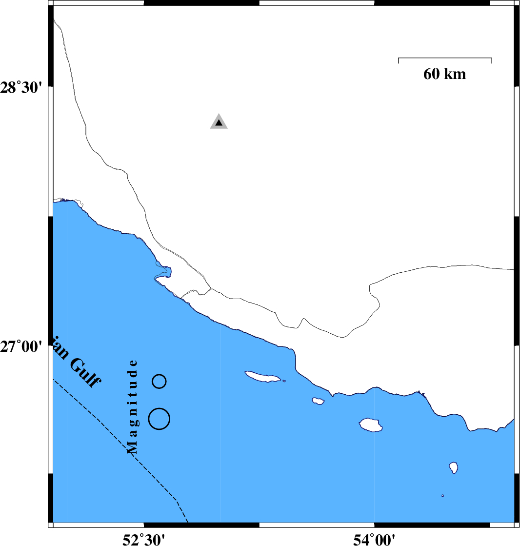 | 2017/08/10 | 13:50:15.3 | 18:20:15.3 | 27.464 | 53.409 | 15 | ML:3.9 | Fars Province, 28 km North-East of Lamerd | ||