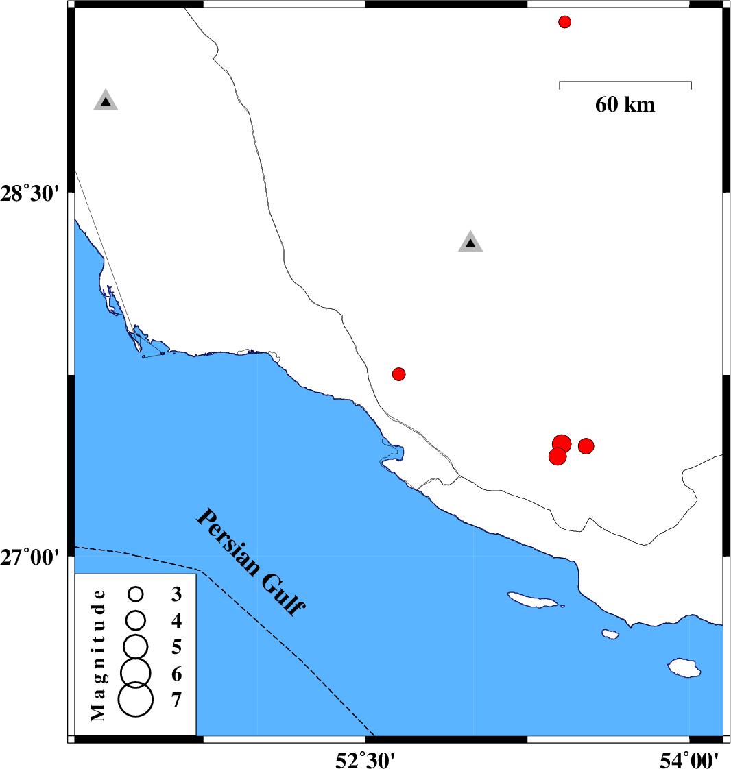 | 2017/08/10 | 13:50:15.3 | 18:20:15.3 | 27.464 | 53.409 | 15 | ML:3.9 | Fars Province, 28 km North-East of Lamerd | ||