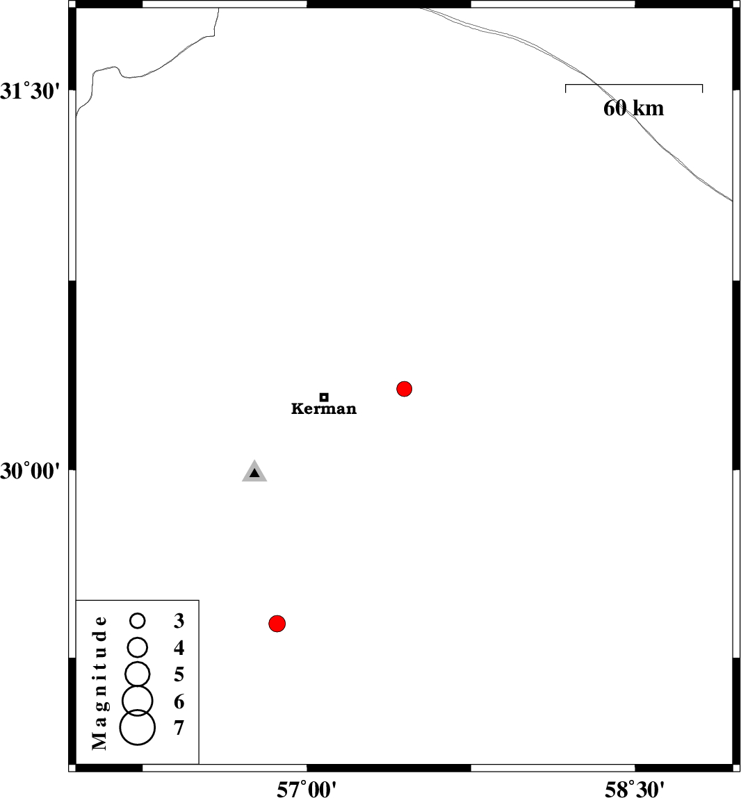 | 2017/08/14 | 00:13:00.7 | 04:43:00.7 | 29.386 | 56.864 | 15 | ML:3.4 | Kerman Province, 30 km North-East of Baft |