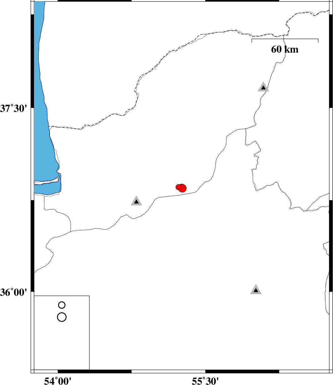 2017/08/21 07:55:08.3 12:25:08.3 36.85655.2286 ML:2.5 Golestan Province, 19 km South of Ramian