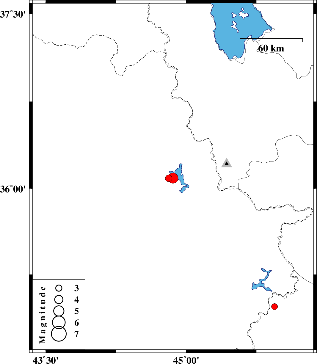 | 2017/08/23 | 13:42:53.5 | 18:12:53.5 | 36.09 | 44.859 | 15 | ML:5 | Iraq, 55 km -West of Sardasht | ||