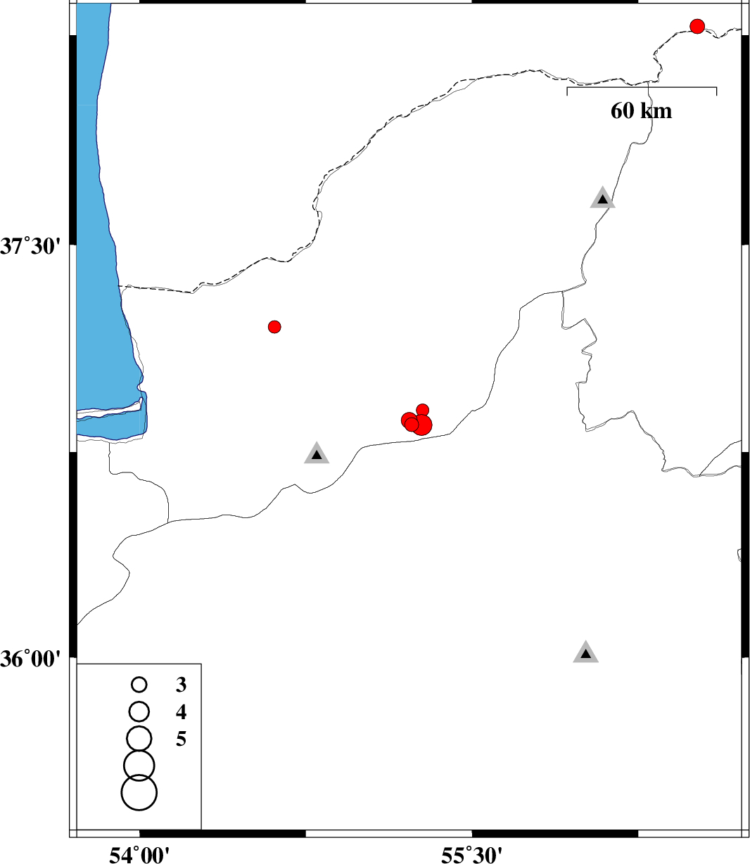 2017/08/21 07:55:08.3 12:25:08.3 36.85655.2286 ML:2.5 Golestan Province, 19 km South of Ramian