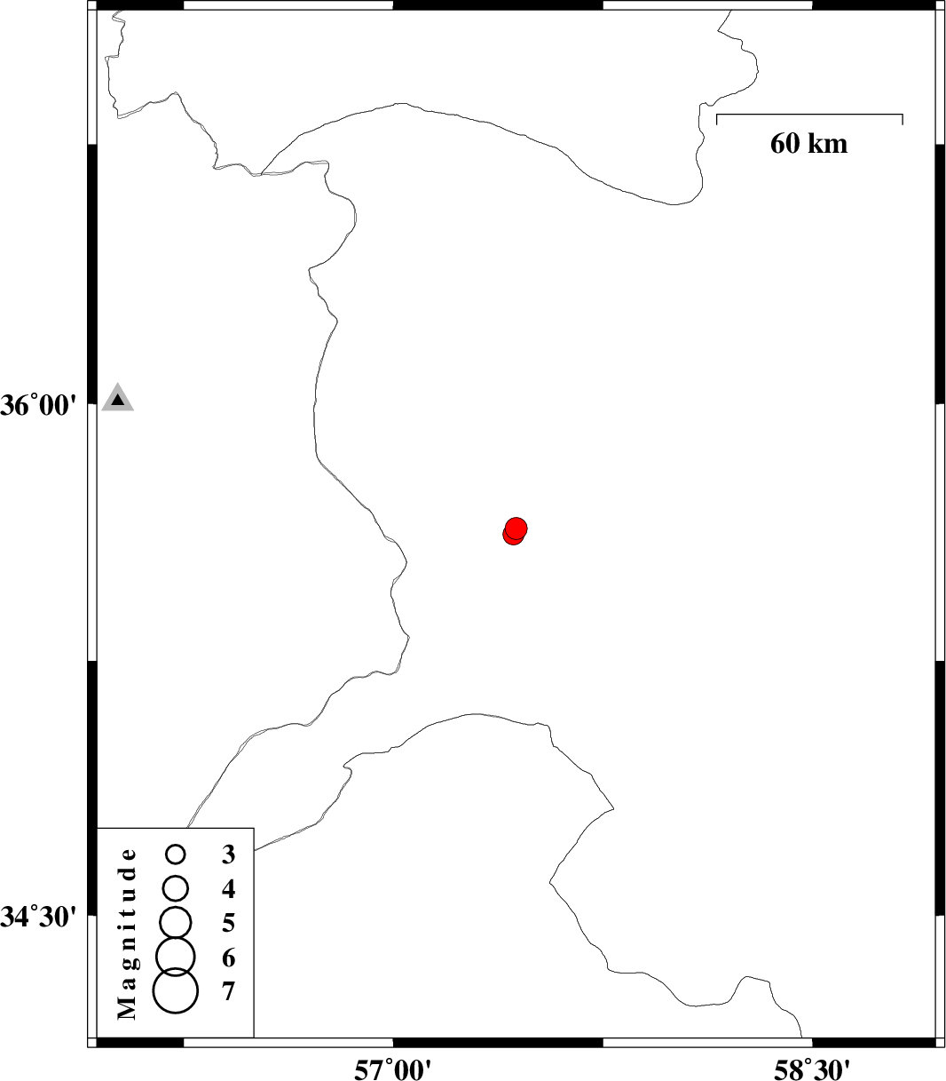 | 2017/08/23 | 06:09:43.5 | 10:39:43.5 | 35.62 | 57.43 | 14 | ML:3.4 | Khorasan(center) Province, 69 km South-West of Sabzevar |