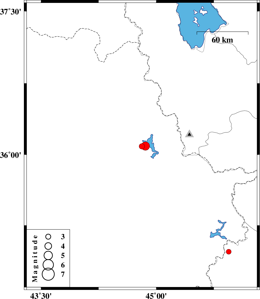 | 2017/08/23 | 13:42:53.5 | 18:12:53.5 | 36.09 | 44.859 | 15 | ML:5 | Iraq, 55 km -West of Sardasht | ||
