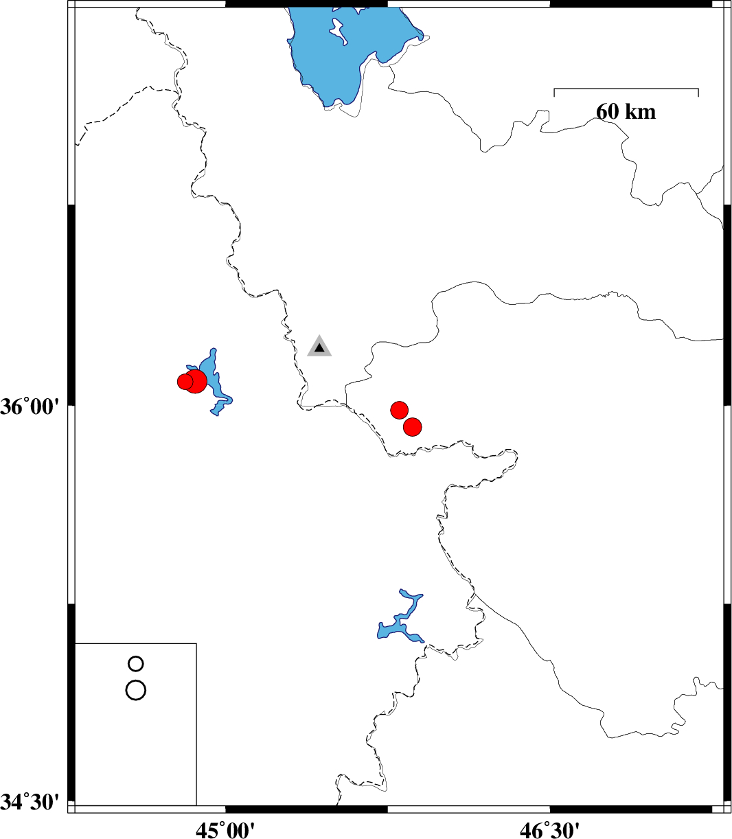 | 2017/08/30 | 10:31:07.1 | 15:01:07.1 | 35.981 | 45.803 | 15 | ML:3.6 | Kurdistan Province, 8 km of Baneh | ||