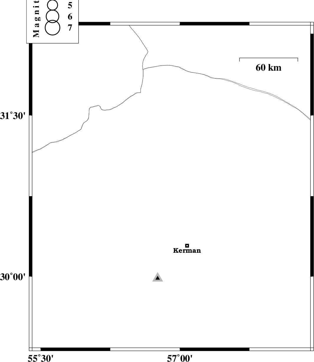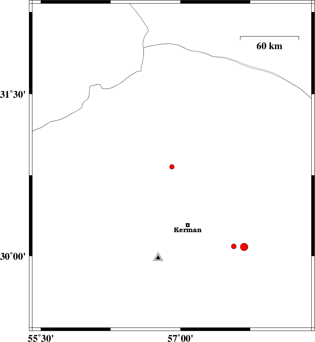 | 2017/09/10 | 23:53:51.3 | 04:23:51.3 | 30.084 | 57.685 | 6 | ML:3.6 | Kerman Province, 63 km South-East of Kerman |