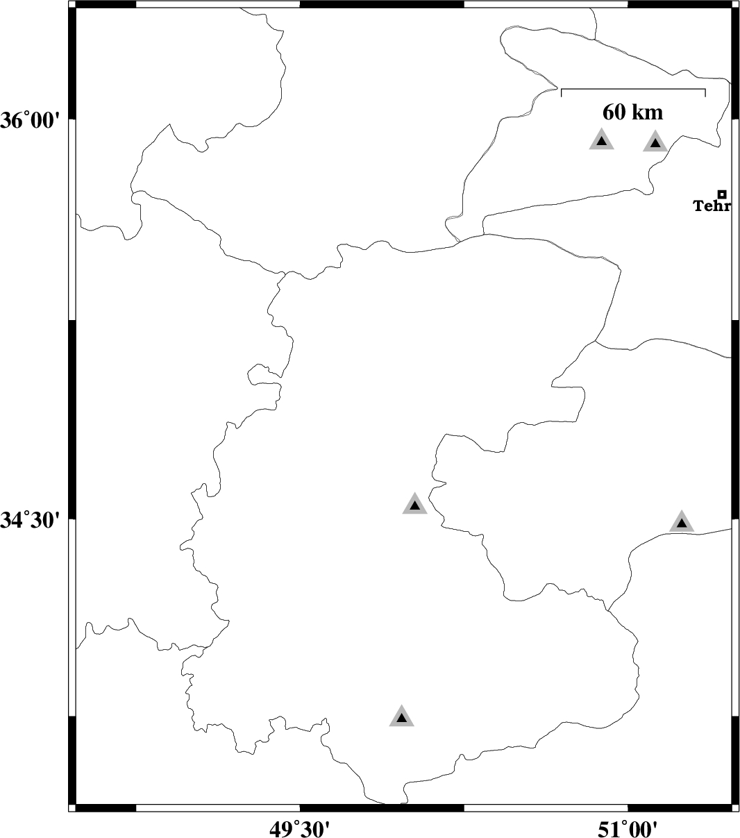 | 2017/08/25 | 07:19:46.9 | 11:49:46.9 | 33.673 | 48.841 | 15 | ML:3.2 | Lorestan Province, 26 km South of Borujerd |