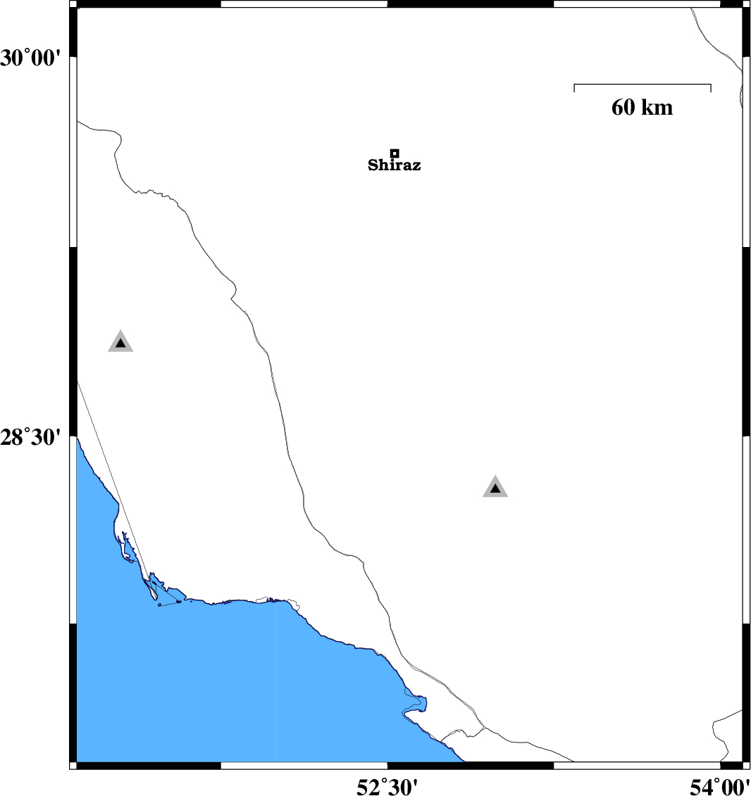 | 2017/09/16 | 05:16:21.3 | 09:46:21.3 | 29.515 | 52.103 | 14 | ML:2.8 | Fars Province, 43 km South-West of Shiraz |