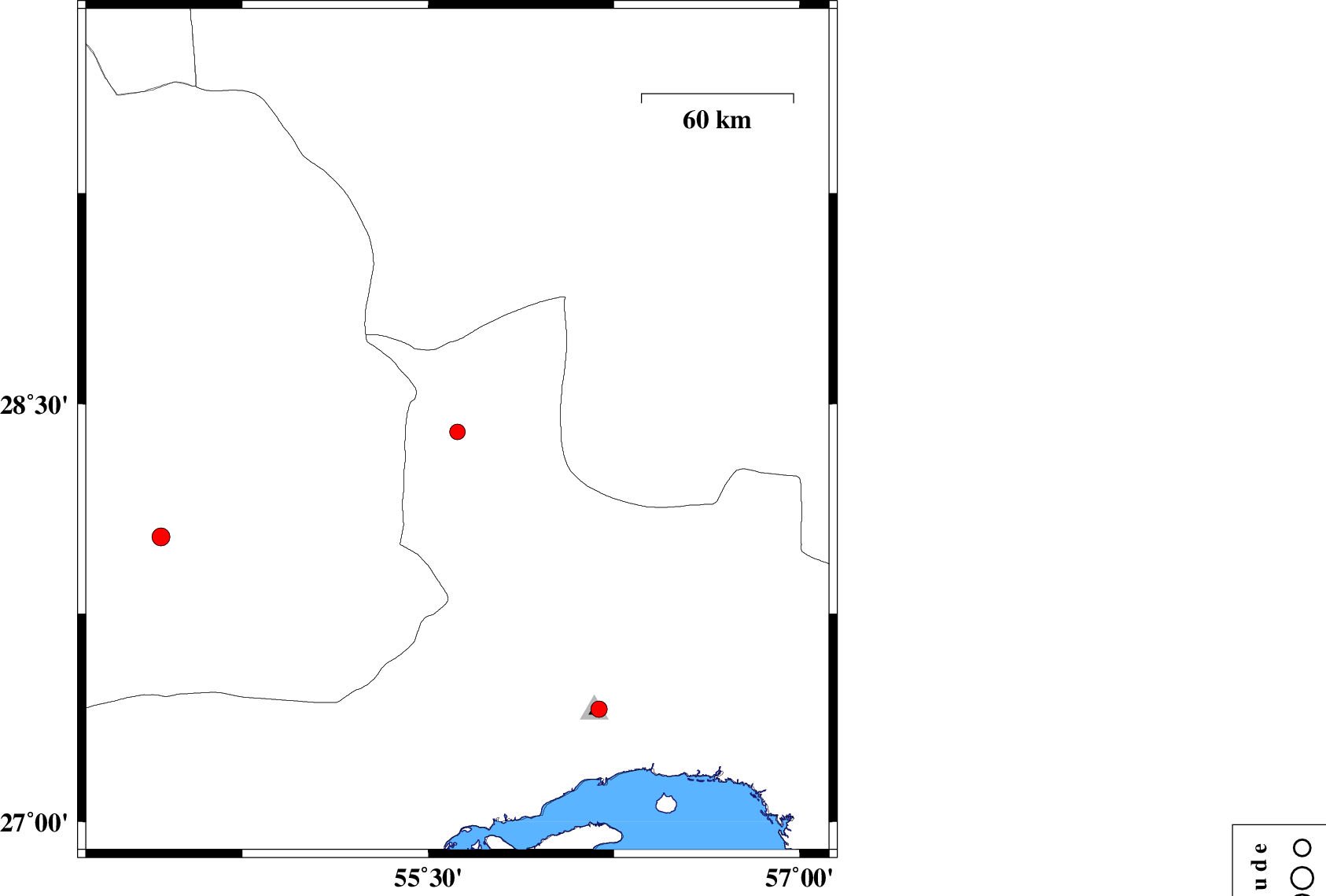 | 2017/03/13 | 05:11:16.6 | 08:41:16.6 | 27.406 | 56.19 | 14 | ML:2.9 | Hormozgan Province, 26 km North of Bandar-e abbas |