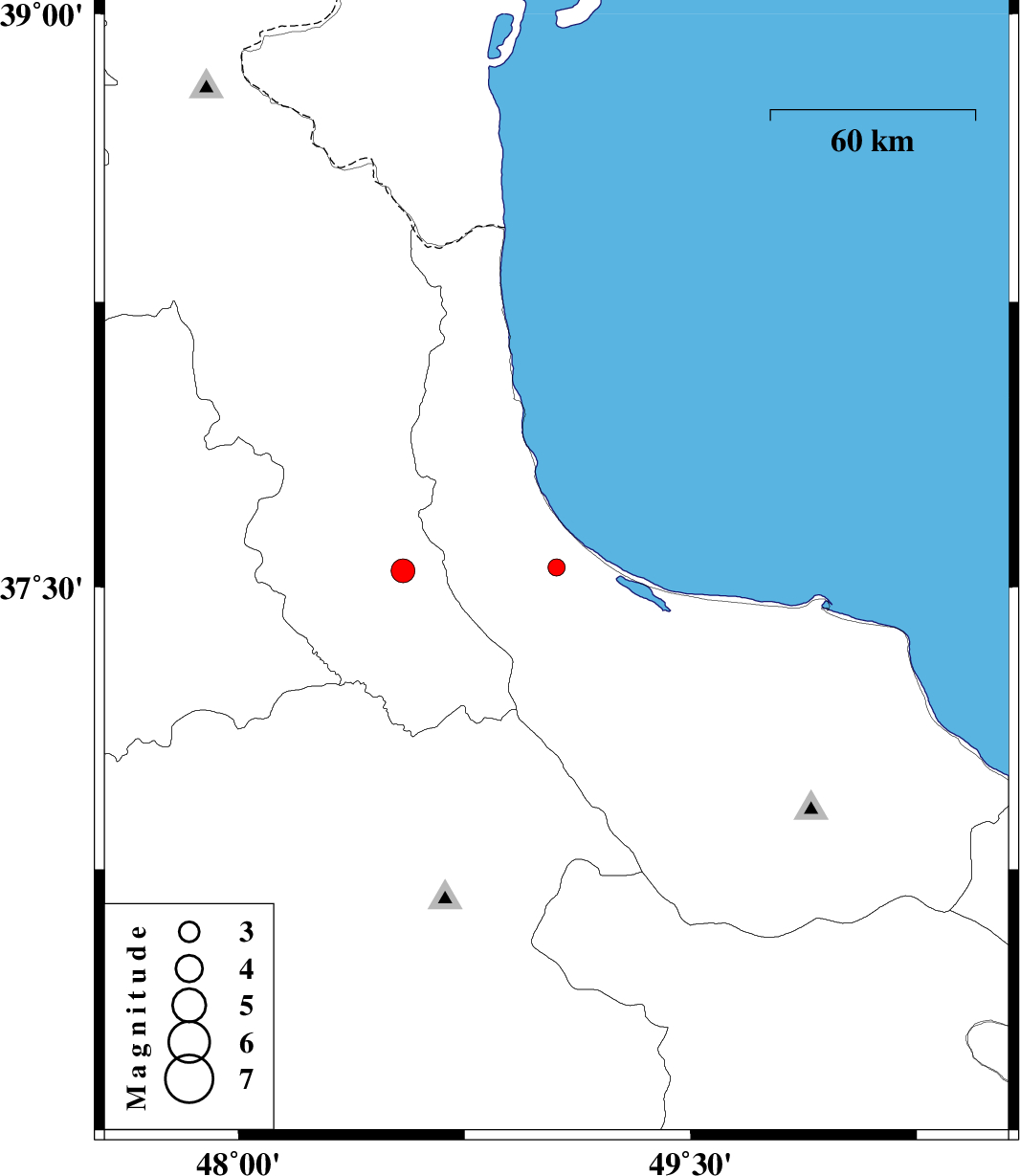 | 2017/10/12 | 19:33:29.9 | 23:03:29.9 | 37.552 | 49.055 | 16 | ML:2.5 | Gilan Province, 8 km of Rezvanshahr | ||