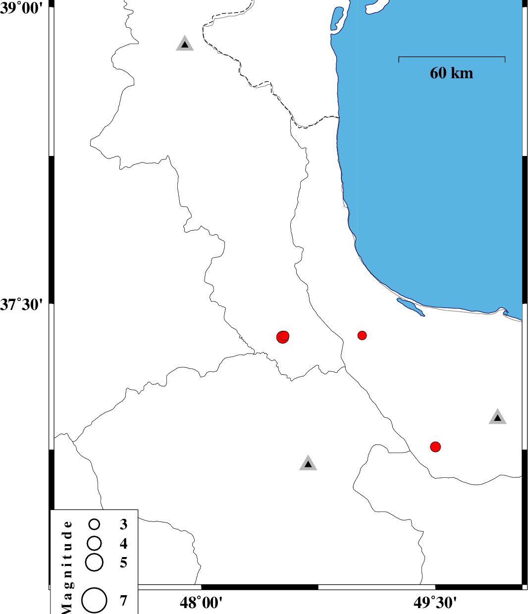 | 2017/10/01 | 19:55:05.2 | 23:25:05.2 | 36.981 | 49.525 | 6 | ML:2.9 | Gilan Province, 20 km North of Rudbar |