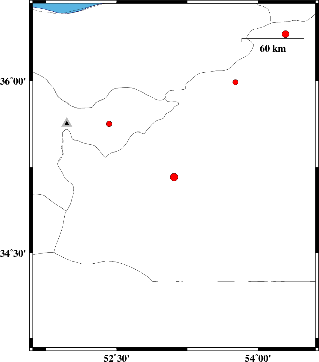 | 2017/09/23 | 00:22:18.7 | 03:52:18.7 | 36.402 | 54.292 | 15 | ML:3.4 | Semnan Province, 27 km North of Damghan |