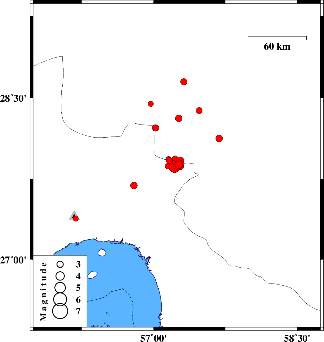 2017/10/23 02:05:37.9 05:35:37.9 27.9357.15714 ML:2.8 Kerman Province, 53 km -West of Kahnuj