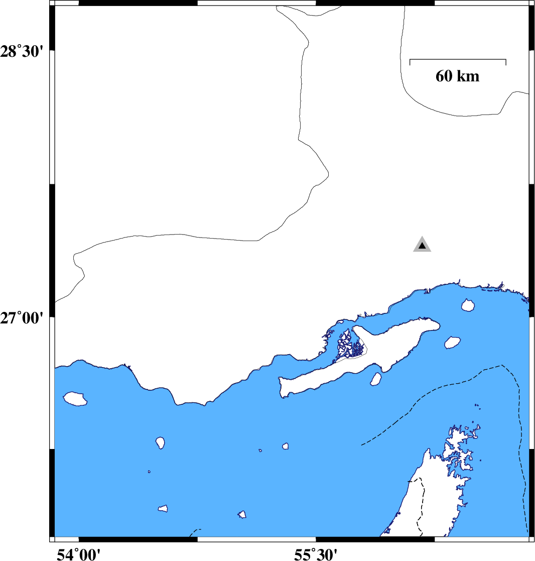 | 2017/10/18 | 13:32:42.8 | 17:02:42.8 | 27.249 | 55.347 | 15 | ML:2.8 | Hormozgan Province, 93 km -West of Bandar-e abbas | ||