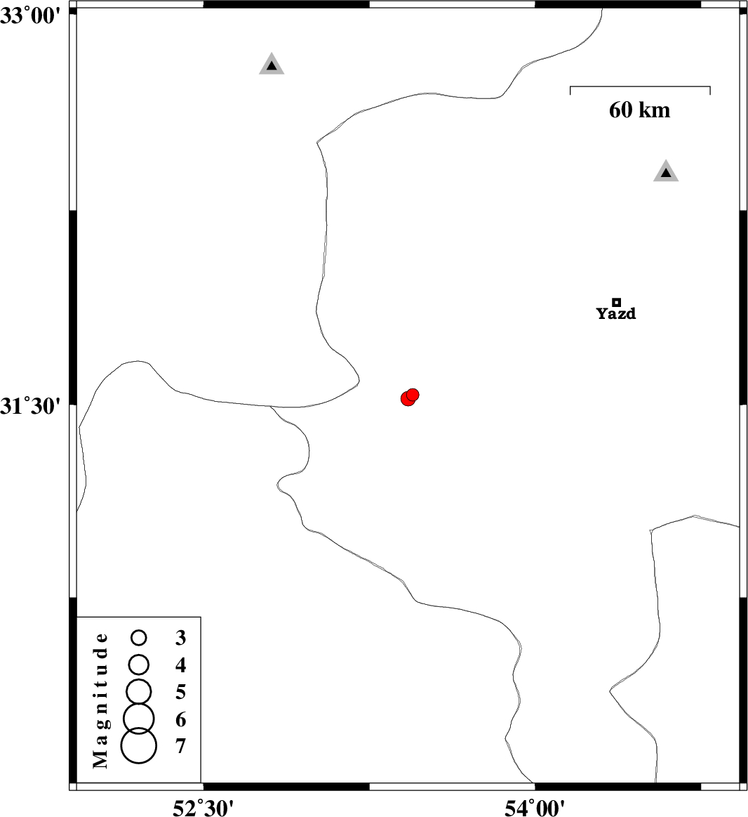 2017/10/31 | 08:32:21.7 | 12:02:21.7 | 31.524 | 53.425 | 14 | ML:3 | Yazd Province, 46 km North-East of Abarkuh |