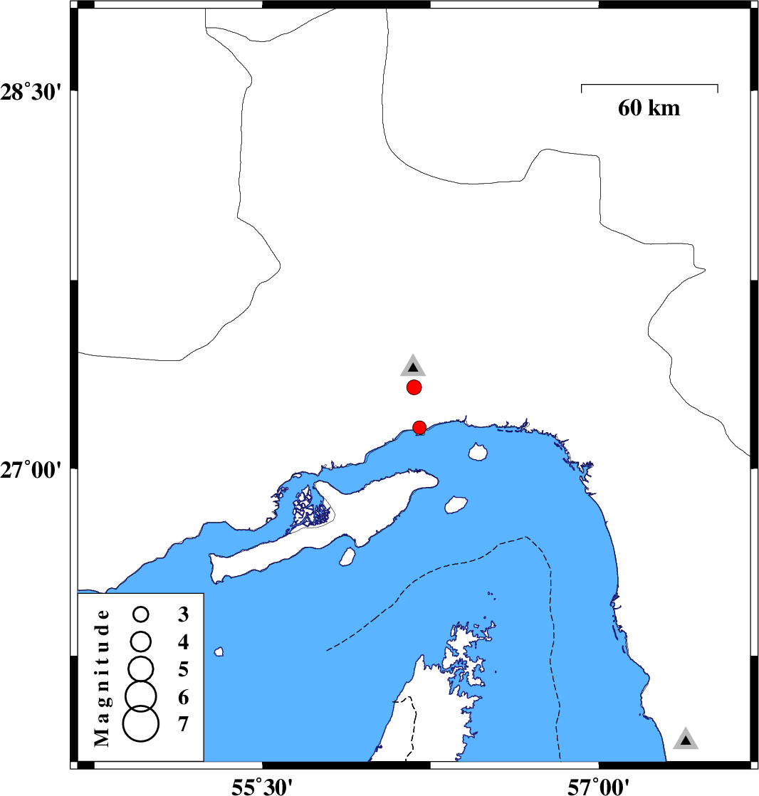 | 2017/11/06 | 17:14:42.4 | 20:44:42.4 | 27.324 | 56.176 | 14 | ML:3 | Hormozgan Province, 19 km North-West of Bandar-e abbas | ||