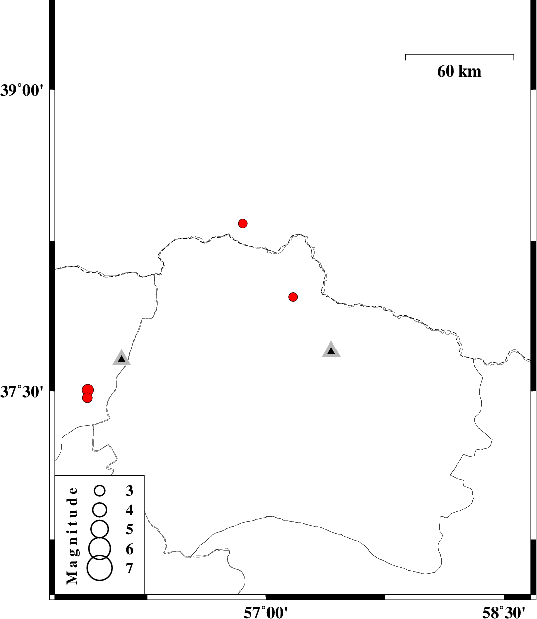 | 2017/03/18 | 13:04:01.5 | 16:34:01.5 | 37.971 | 57.169 | 14 | ML:2.6 | Khorasan(north) Province, 51 km North-East of Ashkhaneh | ||