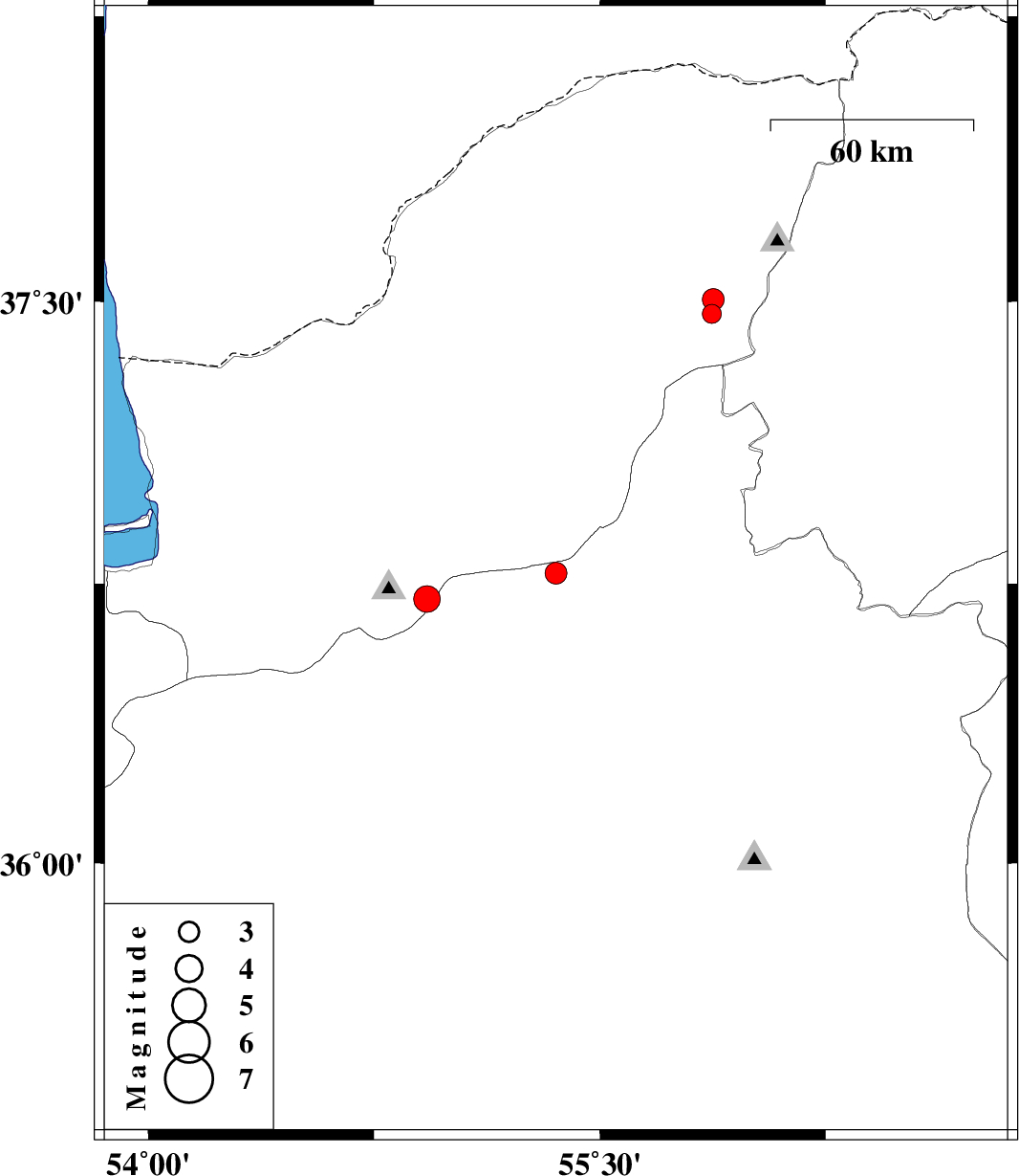 2017/03/16 | 00:48:25.7 | 04:18:25.7 | 37.505 | 55.876 | 16 | ML:3.2 | Golestan Province, 37 km North-East of Kalaleh | ||